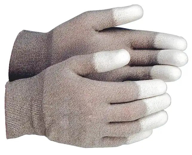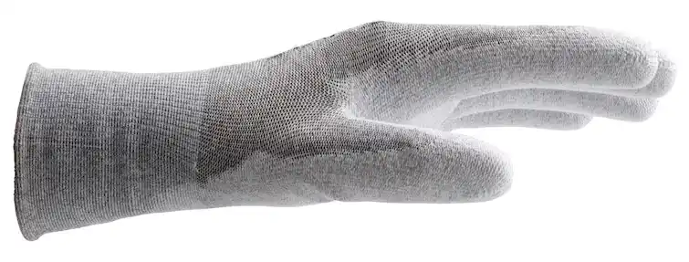 - Koko kämmenen alueelta PU-pinnoitetut ESD-käsineet: Antaa jonkin verran suojaa esimerkiksi paksuja silikoneja vastaan ja ohuen PU-pinnoitteen takia sormituntuma on hyvä hienomekaaniseen työhön.